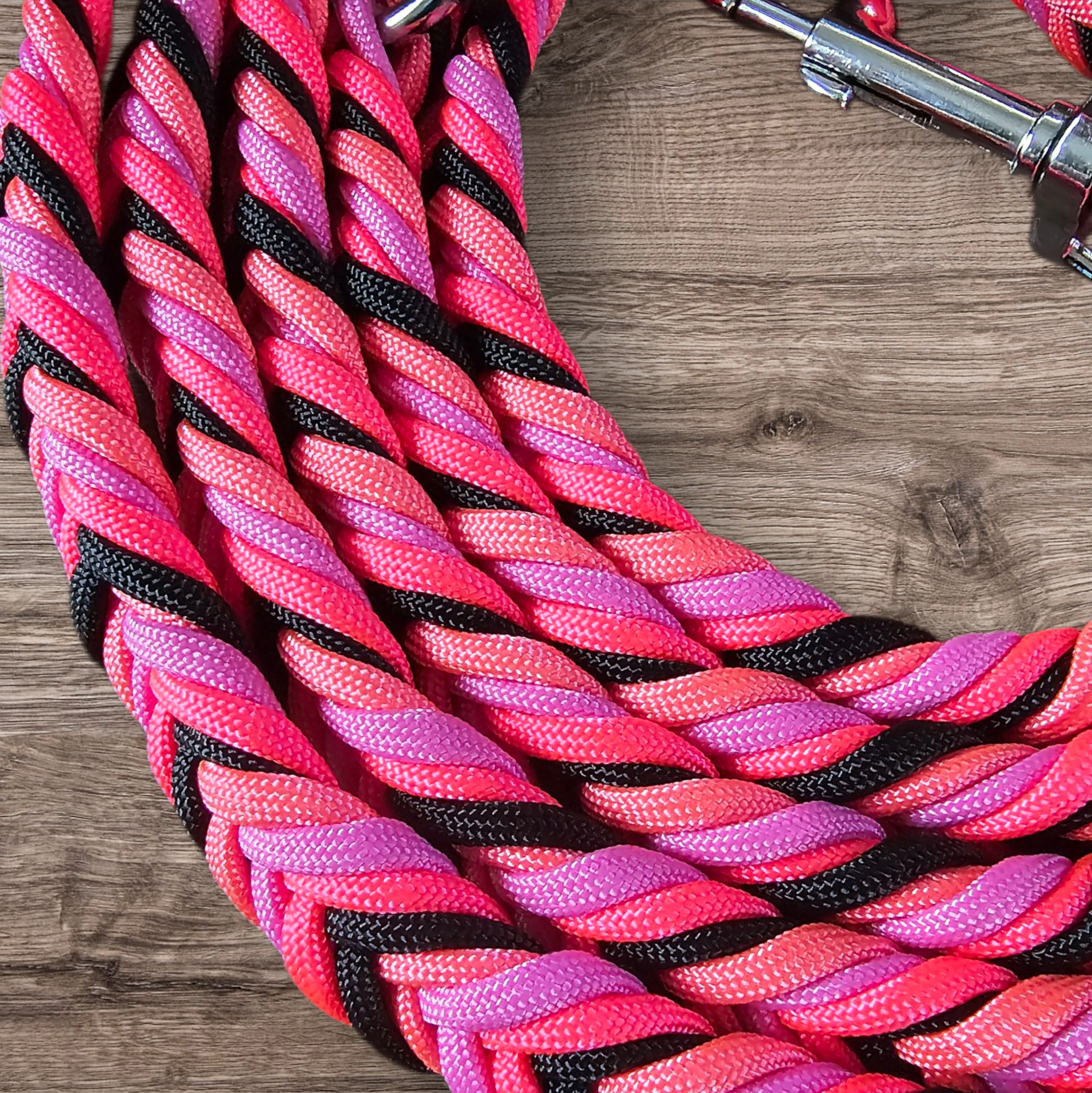 Unsere geknotete 550-Cord-Leine „Lyra“ besteht aus hochwertigem 550-Cord, ca. 2,40 m lang, mit 2 Karabinern und 3 Ringen, die eine individuelle Anpassung der Länge ermöglichen.