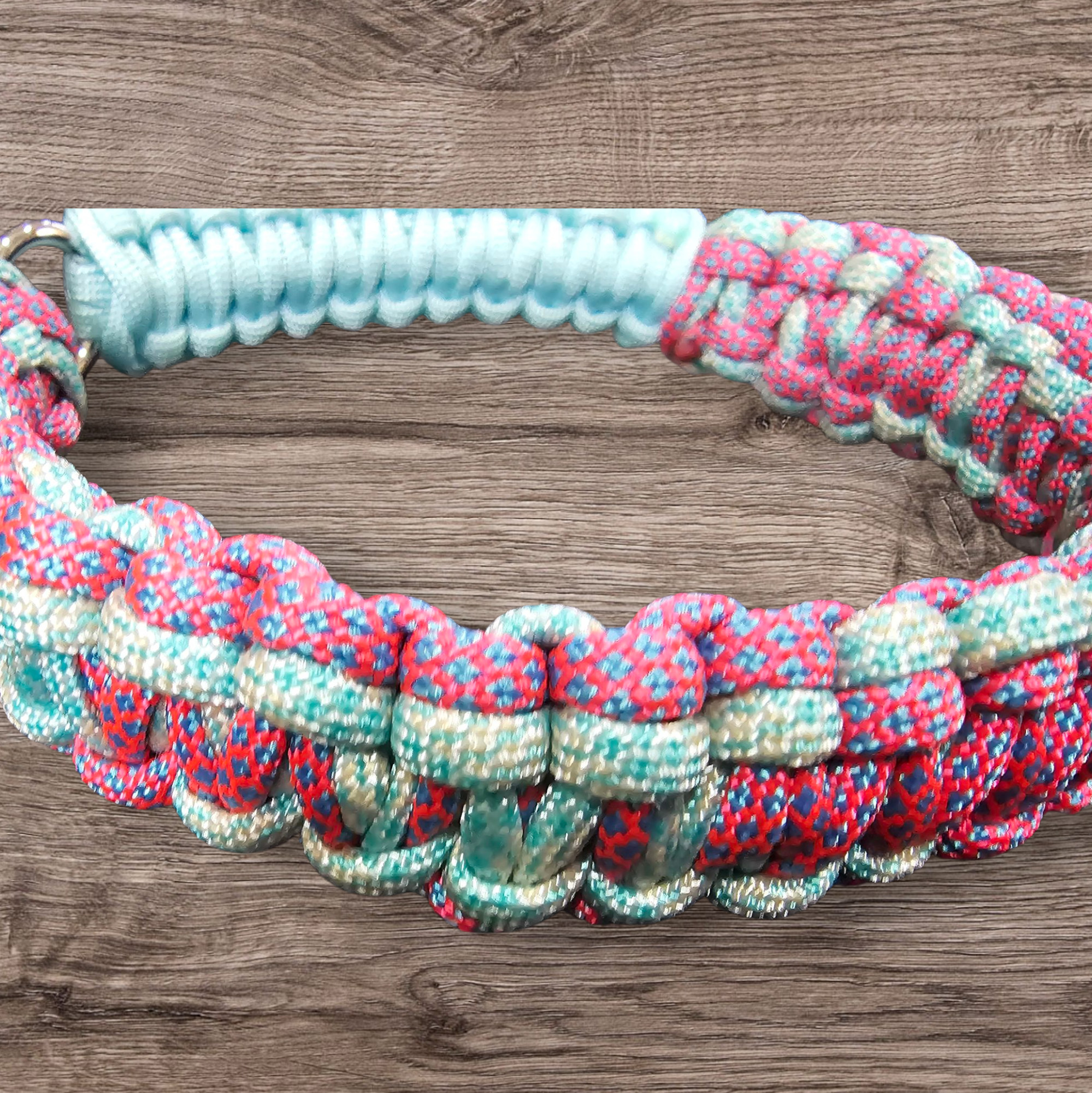 Stilvoll, handgefertigt und besonders das Paracord-Halsband „Nymera“ überzeugt durch sein auffälliges Design und seine robuste Verarbeitung. Der klassische Cobra-Knoten mit zwei Strängen sorgt für Stabilität und eine schöne, gleichmäßige Struktur.